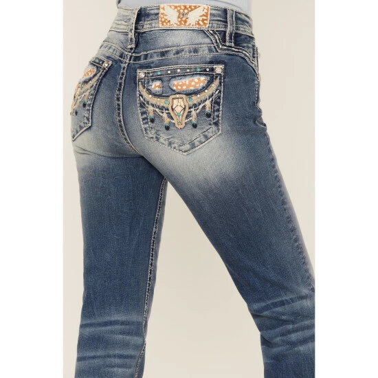 Coupon π₯ Miss Me π© Women’s Long Horn Blowout Southwestern Embroidered Pocket Bootcut π Jeans Blue π₯