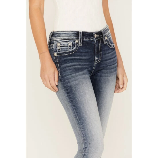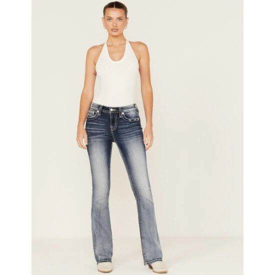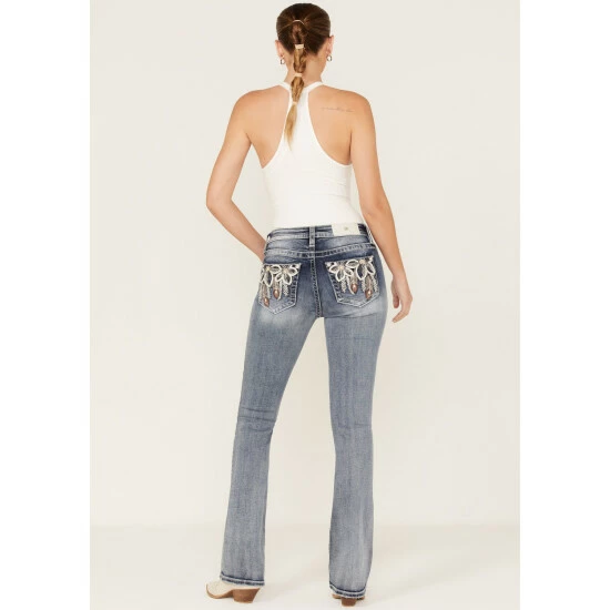 Deals π Miss Me π© Women’s Medium Wash Stretch Mid-Rise Peacock Embroidery Bootcut π Jeans π