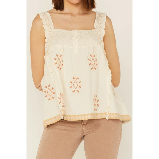 Budget π Miss Me π© Women’s Southwestern Embroidered Ruffle Tank Top Cream π