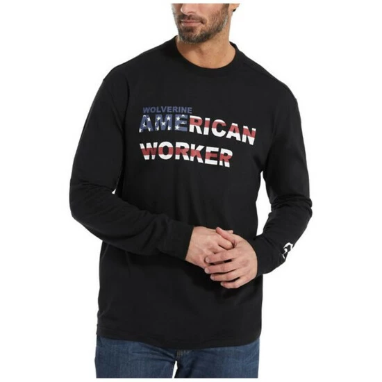 Top 10 π Wolverine Men’s Americana Worker Logo Long Sleeve Work T-Shirt Black β¨